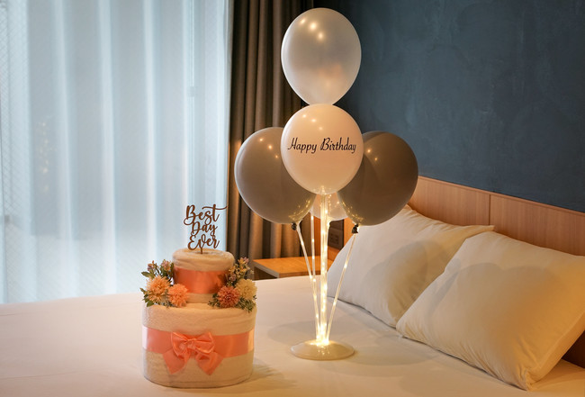株式会社ベステイト(本社:東京都台東区、代表:石橋拓馬)が運営するライフスタイルホテル「LANDABOUT(東京都台東区)」は、タオルケーキ&バルーンのサプライズデコレーションサービスを予約受付開始いたしました。