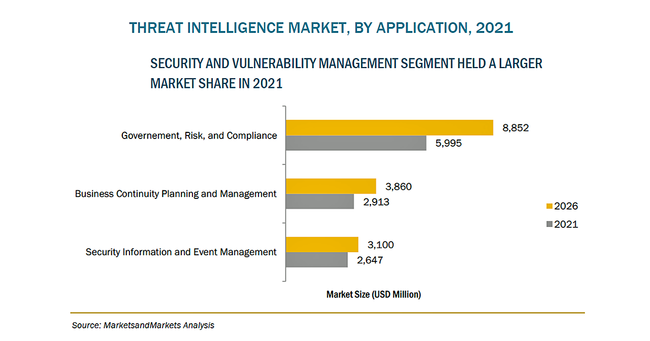 脅威インテリジェンスの市場規模は、2021年の116億米ドルからCAGR6.5%で成長し、2026年には158億米ドルに達すると予測されています。この成長の背景には、政府機関や企業が堅牢な脅威インテリジェンスソリューションの開発のために研究開発投資を行っていることや、専門的なセキュリティサービスやマネージドセキュリティサービスに対する需要が増加していることが挙げられます。また、ベンチャーキャピタルからの資金提供の増加や、脅威インテリジェンスへの投資の拡大が、市場の成長を促進しています。