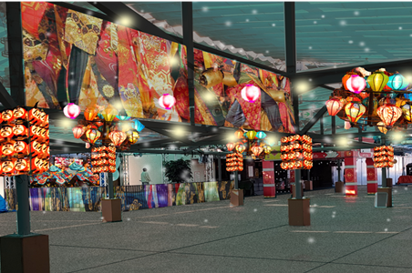日本の元氣と言えば夏祭り!お祭りのやぐらや提灯、お面等の飾りなどで屋台の雰囲気を演出。