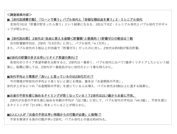 <世代別「お金事情」に関する実態調査> 25歳時の貯蓄額平均は、Z世代が最多の「5.9万円/月」!Z世代はお金の不安を感じるのが、バブル世代より「21.6年」早い!?