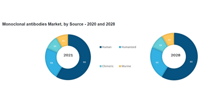 モノクローナル抗体市場はマウス、キメラ、ヒト、ヒト化抗体に区分されます。ヒトセグメントは、2021-2028年の間に最大の市場シェアを占めると推定されます。このセグメントの市場成長は、様々な種類の感染症の治療のためのヒトモノクローナル抗体の統合のための上昇に起因しています。