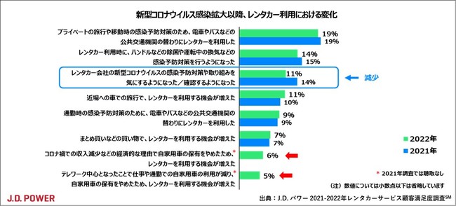 感染予防対策を気にするユーザー減少傾向、緩やかに進むモバイルアプリ利用【J.D. パワー 2022年レンタカーサービス顧客満足度調査(SM)】