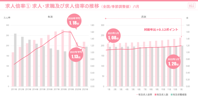 2022年1月度の有効求人倍率は1.20倍。完全失業率は2.8% 労働市場データレポート(2022年1月度版)
