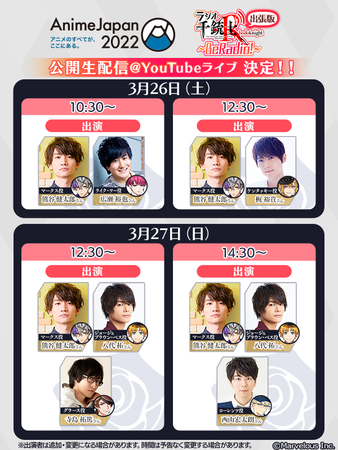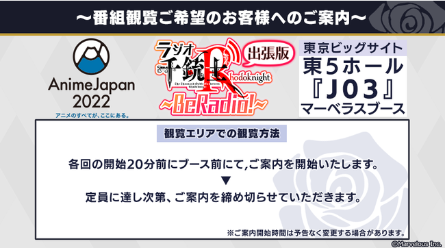 ※配信内容は「AnimeJapan 2022」のマーベラスブースにて行われる、ラジオ「千銃士R~BeRadio!~出張版」の内容と同様です。