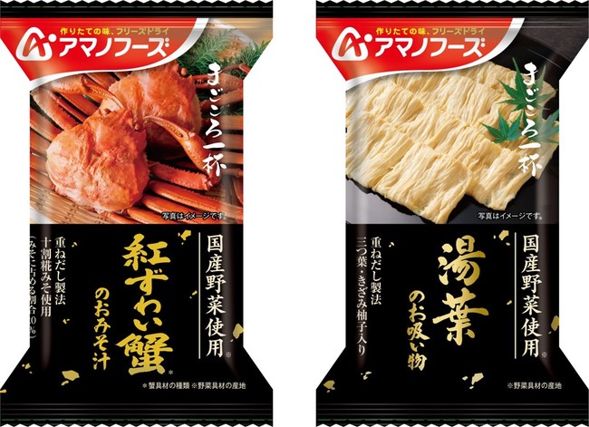 アサヒグループ食品株式会社(本社 東京、社長 川原浩)は、「アマノフーズ」ブランドの『まごころ一杯 紅ずわい蟹のおみそ汁』『まごころ一杯 湯葉のお吸い物』を3月25日より数量限定で新発売します。また、同2品を加えたギフトセットも5月25日より数量限定で新発売します。※1