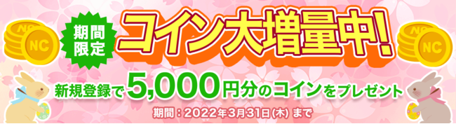 期間中に新規会員登録をしていただくと、通常1,000円分のところ、今なら5,000円分の入会特典コインをプレゼントいたします。このお得な機会にぜひネイティブキャンプをご利用ください。
