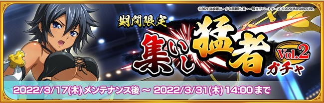 株式会社マーベラス(代表取締役社長 許田周一/所在地:東京都品川区)は、原作が20周年を迎えた人気シリーズ「一騎当千」のAndroid/iOS向けゲームアプリ『一騎当千エクストラバースト』で、2022年3月17日(木)より、イベント「激闘!大闘士フェスティバル!」の後半を開始いたしました。