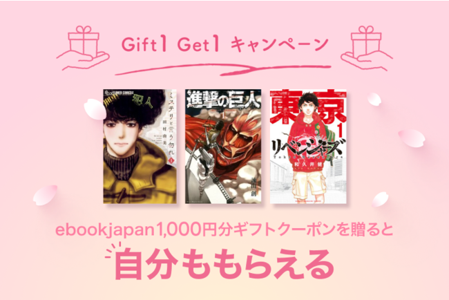 電子書籍販売サイト「ebookjapan」をヤフー株式会社と協力して運営する、株式会社イーブックイニシアティブジャパン(本社:東京都千代田区、代表取締役社長:高橋将峰(たかはしまさみね)は、LINE株式会社が運営する「LINEギフト」に11月29日から新規出店し、ebookjapanサイトで利用できるギフトクーポンを販売しております。この度3月17日(木)~3月23日(水)の期間に、「ebookjapan1,000円分ギフトクーポン」を贈ると、贈り主もクーポンがもらえる「Gift1 Get1キャンペーン」がスタートいたしました。是非この機会に、ギフトクーポンの購入をご検討ください。