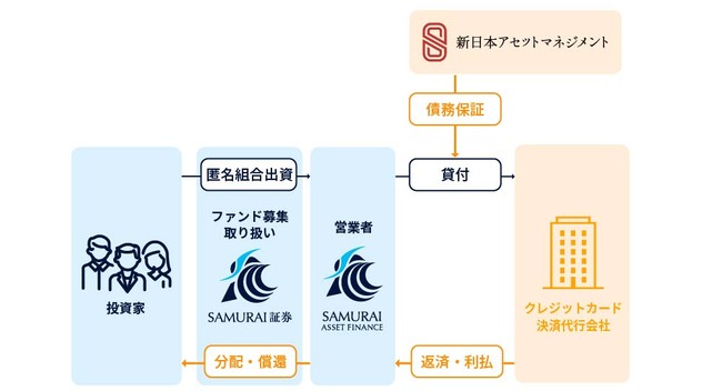 このファンドは、SAMURAI ASSET FINANCE株式会社(以下、「営業者」といいます。)が大手キャッシュレス決済事業者(以下、「本貸付先」といいます。)に対して貸し付けする、貸付型クラウドファンディングとなります。