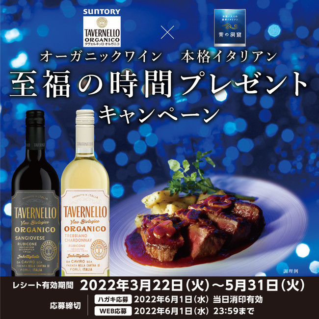 サントリーワインインターナショナル(株)は、「タヴェルネッロ オルガニコ」シリーズを対象に、「オーガニックワイン×本格イタリアン 至福の時間プレゼントキャンペーン」を3月22日(火)から全国で実施します。