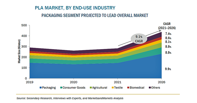 PLAは、包装、消費財、繊維、農業など、さまざまな最終用途の産業で使用されています。しかし、現在進行中のパンデミックにより、最終用途産業に影響が及んでいます。労働力不足、物流の制約、入手が困難な材料などの制約が、業界の成長を鈍化させています。