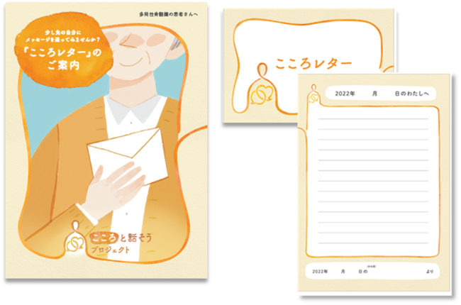 「こころと話そうプロジェクト」では、患者さんが日々の生活をどのように過ごしたいのか、またどのようなことを大切にして生きていきたいのかなど、その希望や想いを『こころレター』にご自身宛てのメッセージとしてしたためます。メッセージカードは、患者さんが指定した日に、自分宛てに届きます。メッセージを書き、受け取るという体験の中で、自分の大切な想いを見つめ直し、それを周囲に伝え、話し合う重要性についても考えていただく機会を提供します。