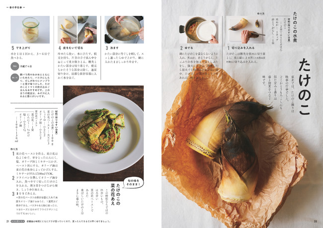 旬のおいしさを閉じ込めた保存食は、日々のごはん作りを助け、「季節を深く味わう喜び」を教えてくれるものばかり。紹介している保存食を使った、季節ごとの献立も必見です。