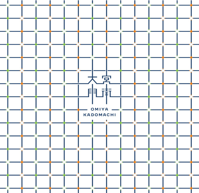 大宮門街でたくさんの人がゆきあう様子を、ロゴから広がるシンプルな格子のパターンで表現しました。錯視の効果を利用したパターンは交わる点がキラキラと輝いて見え、とりどりの人生が交差するマチカドで人と人がつながり物語がうまれるというコンセプトを具現化したデザインになっています。