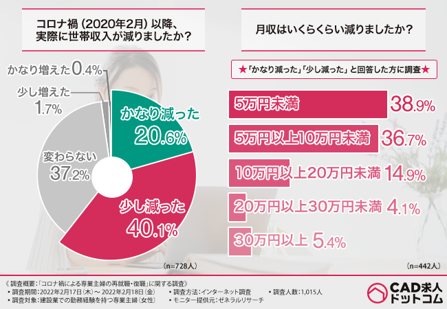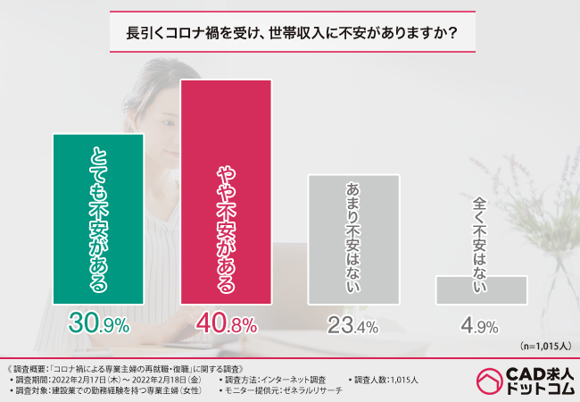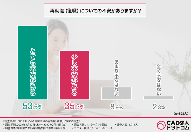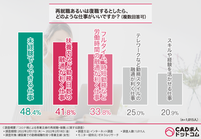 これにともない当社では、コロナ禍の影響による収入不安が増加している現在の再就職(復職)について、建設業での勤務経験を持つ専業主婦(女性)を対象に、「コロナ禍による専業主婦の再就職・復職」に関する調査を実施しました。