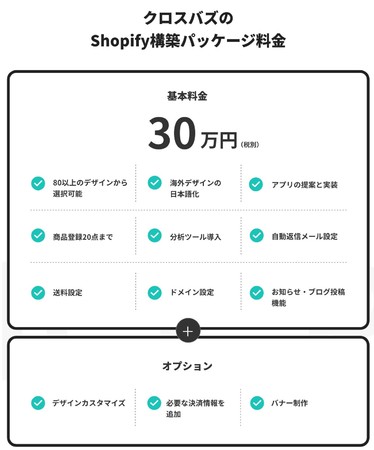 「BUZZ SHOP」はパッケージ料金になっています。基本料金は30万円(税別)、必要に応じてオプション費用がかかります。