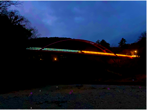 一刻も早く平和が訪れるよう祈りを込めて、飯能河原の割岩橋をウクライナ国旗色をイメージした青と黄色に点灯します。