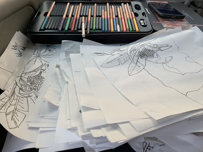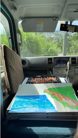 もともと絵本も大好きだったこともあり、絵の勉強を2008年ごろに始めると、指導の方から「描くモノをよく見ることが大事」と言われ、音楽活動の傍ら、時間を見つけては車を走らせ、沖縄の自然を見に行ったり、動物園へ見に行ったりして絵を描き続けました。