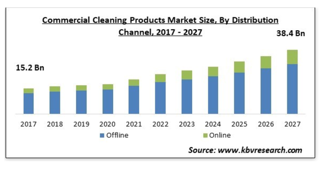 業務用洗浄剤の市場規模は2027年には384億ドルに達し、予測期間中にCAGR10.9%の市場成長率で上昇すると予測されています。