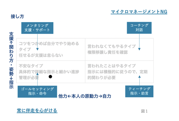 例えば、図1では「言われなくてもやるタイプ」にマイクロマネージメントをしてしまうとモチベーションが低下してしまいます。一方で「不安なタイプ」にはマイクロマネージメントが必要ですが、放置してしまえば、モチベーション低下につながります。つまり、タイプ別にコミュニケーションやマネジメントの方法も変える必要があるという事です。