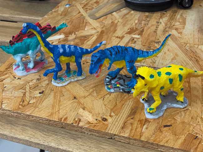 水性アクリル絵の具と筆を使ってオリジナルの 恐竜フィギュアをつくるワークショップ。