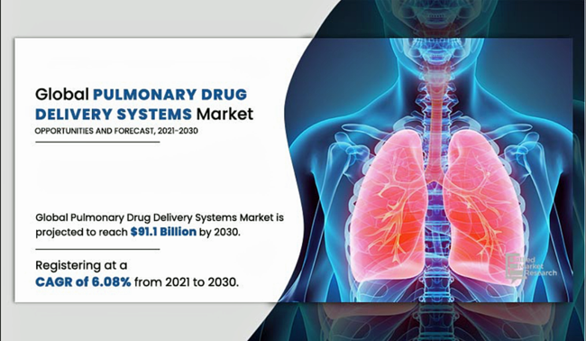 ドラッグデリバリーシステム、肺に直接働きかける経肺投与分野の市場規模は2030年に911億2,861万米ドル到達見込み