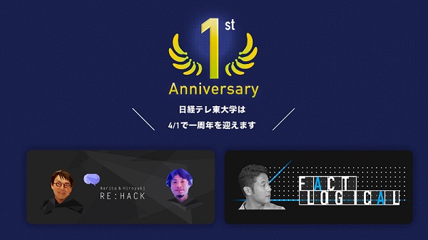 2022年4月1日(金)19時より1周年を記念した特別番組をライブ配信!日経テレ東大学チャンネルおなじみ番組プロデューサーの高橋弘樹プロデューサー(テレビ東京)がこれまでの日経テレ東大学チャンネルを視聴者の皆さんと一緒に振り返ります。