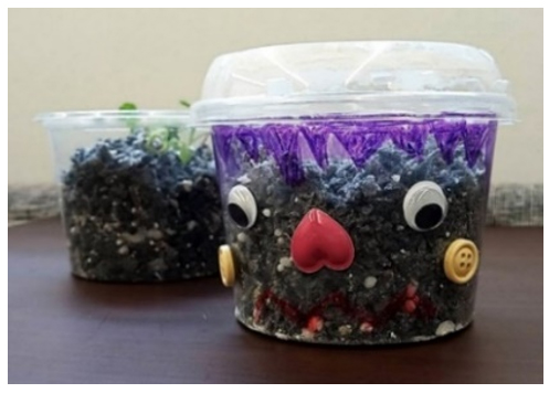 バイオマス容器にボタンやマスキングテープを使用してオリジナルの植木鉢を作ろう!