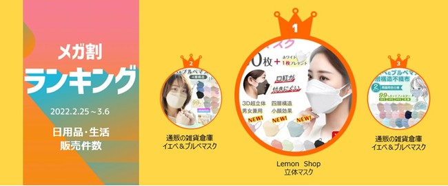 「ランキング上位は引き続きマスクが占める形となりましたが、寝具やバス用品など新生活に向けた企画が大きく売り上げを伸ばしました。また今回初めてメガ割に参加いただいた販売店様の企画からもヒット商品が多数生まれました。」(リビング ディビジョンリーダー 寺村)