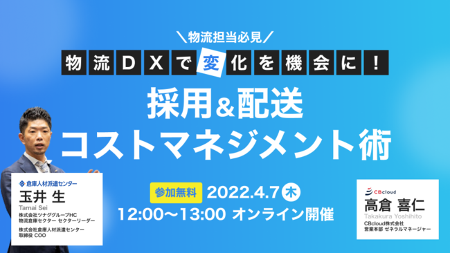 【物流担当必見】前回好評につき再開催!オンラインセミナー『物流DXで変化を機会に!採用&配送コストマネジメント術』