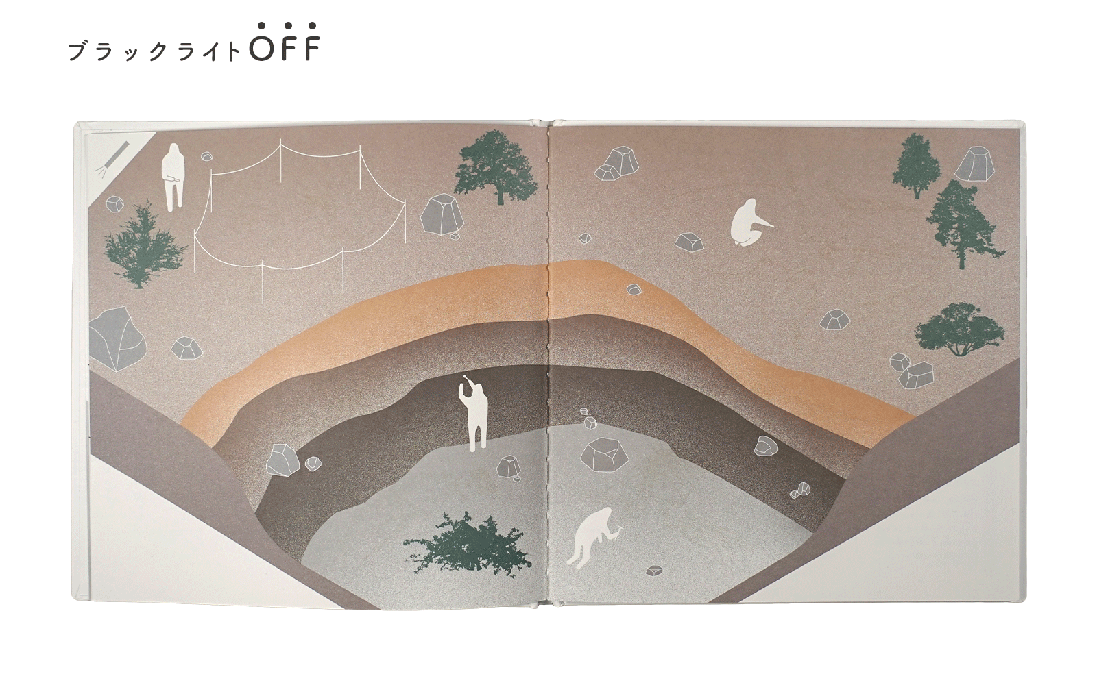 絵本にブラックライトを当てると、絵本に隠れた化石が浮かび上がります。