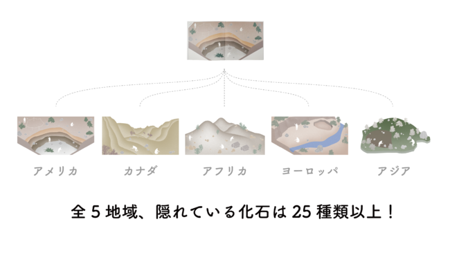 1つの地域に5体の化石が隠れています!