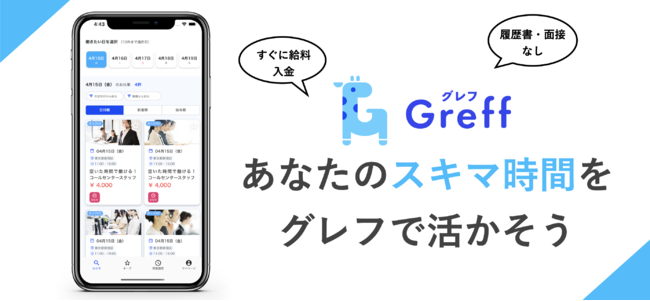 グレフは2020年10月にサービスローンチしたスキマバイトマッチングサービスで、スキマバイトを探しているワーカー様と、人手の足りない企業様をマッチングさせるプラットフォームです。無料にて簡単ユーザー登録が可能で、最短即日にでも勤務を開始することができます。