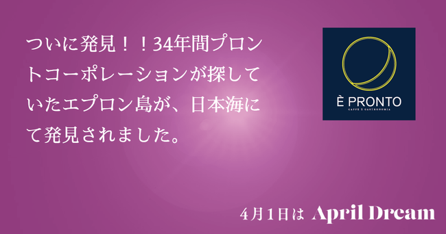 当社は、4月1日を夢を発信する日にしようとするApril Dreamに賛同しています。このプレスリリースは「È PRONTO(エプロント)」の夢です。