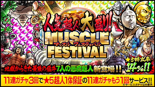 「地獄からきた最強の猛牛 7人の悪魔超人(★5)」が登場する「人気超人大盛り!マッスルフェスティバル」を開催!