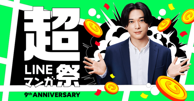 LINEマンガ9周年を記念したキャンペーン「超LINEマンガ祭」では、日頃よりLINEマンガをご愛読いただいている読者の皆様へ感謝の気持を込めて、2022年4月1日(金)から2022年5月9日(月)にかけて、様々なキャンペーンを開催します。