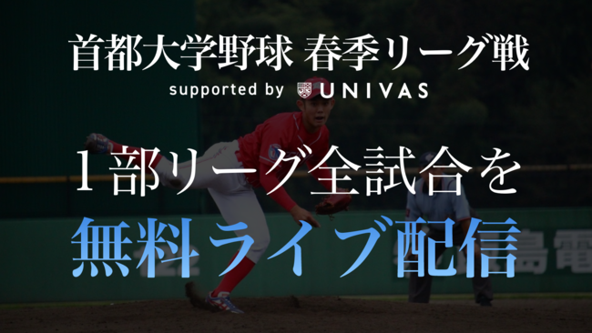 一般社団法人大学スポーツ協会(所在地:東京都千代田区、会長:福原紀彦、以下UNIVAS)は、首都大学野球連盟(所在地:東京都渋谷区、会長:松前義昭)が主催する2022年度首都大学野球春季リーグ戦(1部リーグ全試合)を、UNIVAS公式アプリ「UNIVAS Plus」およびUNIVAS公式サイト「UNIVAS LIVE」にて、4月2日の開幕戦より無料ライブ配信いたします。またライブ配信を見逃した方にはアーカイブ映像の配信を行いますので、いつでも野球を楽しむ事ができます。またオフィシャルメディアアライアンスの株式会社運動通信社(本社:東京都港区、代表取締役社長:黒飛功二朗、以下、運動通信社)の協力のもとスポーツブル内での配信も行われます。