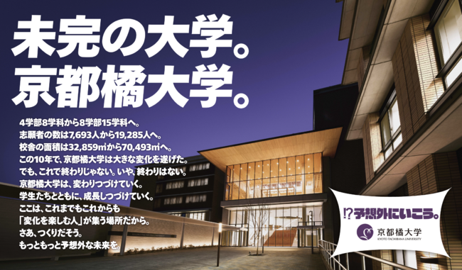 京都橘大学の新しいコンセプト『予想外にいこう。』を掲げ、ブランドコミュニケーションを刷新