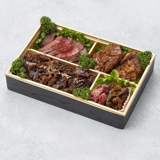 仙台牛のステーキなど3種類の味が楽しめる弁当
