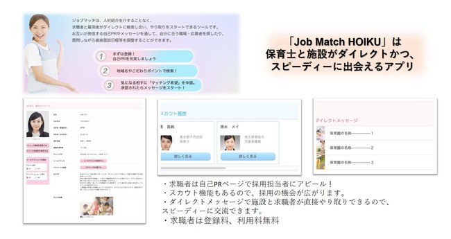 (開発イメージ図:当社が受託にて開発した保育士等と施設をマッチングさせるサービス)