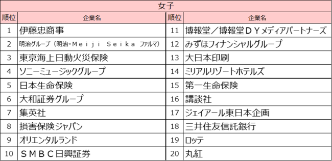 【3】男子は商社・金融、女子はコンテンツ・IP・旅行
