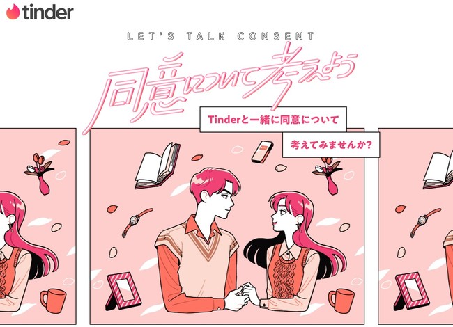 ソーシャル系マッチングアプリ「Tinder」 を運営する Tinder Japan(本社:東京都港区、カントリーマネージャー:チョウ・キョ)は、デートや恋愛において、信頼関係を深める上で欠かせないコミュニケーション“同意”について考えることができる、オリジナルサイト「Let’s Talk Consent」(レッツ・トーク・コンセント)を、4月4日(月)に公開しました。