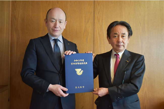 株式会社エスエスケイは、2018年5月にスポーツを通じたまちづくりに関する取組みを実施していくとし、大阪府東大阪市と連携協定を締結。エスエスケイでは、複数のスポーツが体験できる子ども向け体験型イベント「してみる」の定期開催や東大阪市に日本初となったウィルチェアスポーツコートへの協力、ひとり親家庭支援に繋げる野球イベントなどを実施。これらが評価され、2022年3月末に、東大阪市の野田義和市長より有功者等表彰を受賞しました。