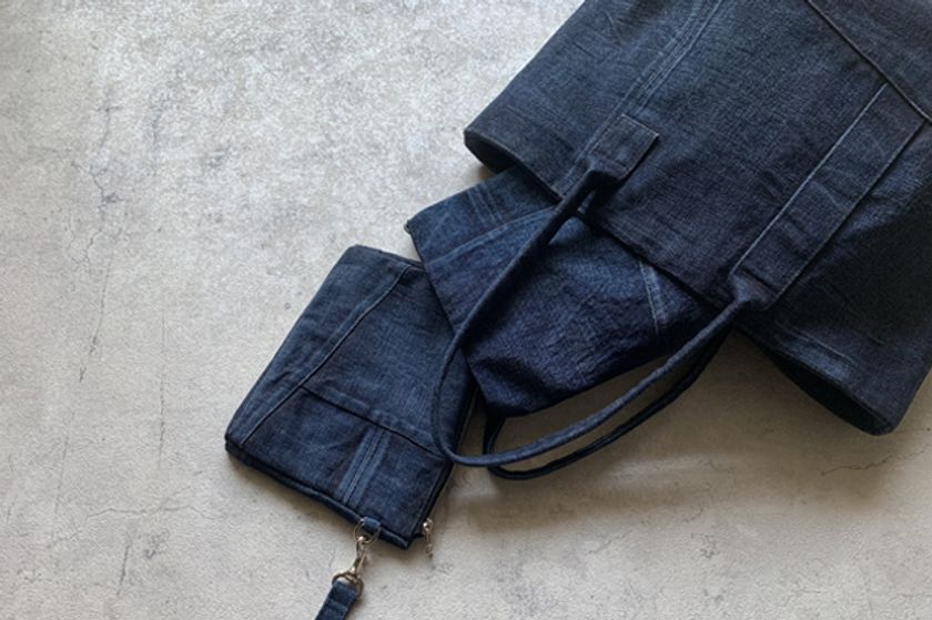 3種類のデニムバッグ:定番のショルダーバッグ、サコッシュ、アシンメトリーのトートバッグ