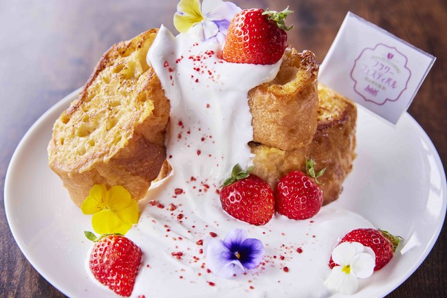 長崎県産の苺を使用した春限定のフレンチトースト。エディブルフラワーで見た目もとってもキュートに仕上がっています。