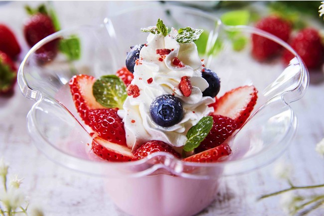 春気分にひたれるピンク色の杏仁豆腐。甘酸っぱい苺やベリーを贅沢に使用しています✩
