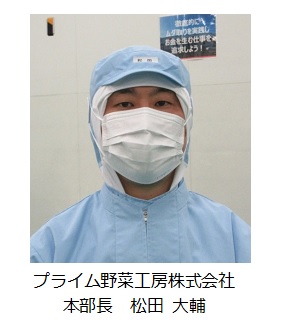 「今回のJmHACCP取得を目指して、特に社員教育に注力をしました。全従業員に帳票や記録表の整備や維持管理を徹底。外部防虫防鼠業者によるOFF-JTと月1回のHACCPミーティングにより衛生教育を強化し、一人一人の業務に対する意識を高めました。これからもお客様に喜んでいただける商品を提供できるよう、HACCPを通して品質や衛生管理の継続的な向上に努めてまいります」(プライム野菜工房株式会社 松田)