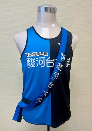 飯能市「駿河台大学駅伝部」のユニフォーム、たすきを展示