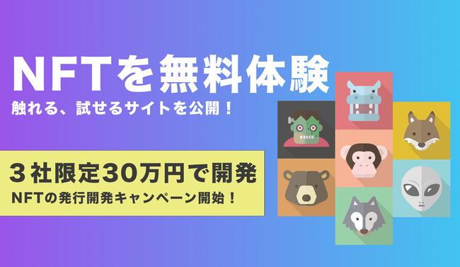 NFTを無料で体験できるサイトを公開。3社限定30万円でNFT発行サービスの開発を行うキャンペーン開始!
