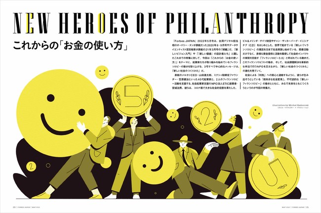 グローバルビジネス誌『Forbes JAPAN(フォーブス ジャパン)』(発行元:リンクタイズ株式会社、代表取締役会長:高野真)の2022年5月号の特集は、「これからの『お金の使い方』」。起業家たちが取り組みを始めているフィランソロピーの動きを取り上げています。